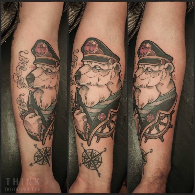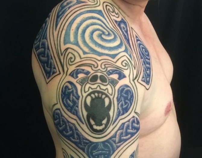 2Le tatouage à l'effigie d'un ours polaire confère à son propriétaire solitude et indépendance. Cette personne a tendance à se tenir à l'écart de la société et a l'habitude de prendre ses propres décisions. Il ne peut pas être un joueur d'équipe. Ce symbole est également appliqué par ceux qui souhaitent protéger leur territoire des étrangers, pour survivre en toute situation malgré des conditions difficiles. L'ours polaire est un tatouage d'un ours polaire sur le corps d'un homme, un symbole trop souvent utilisé par les hommes nordiques. Aujourd'hui, le tatouage n'est pas moins populaire. Afin que les couleurs blanches ne se confondent pas avec un corps, un ours blanc est tatoué sur un fond noir ou tout autre fond.