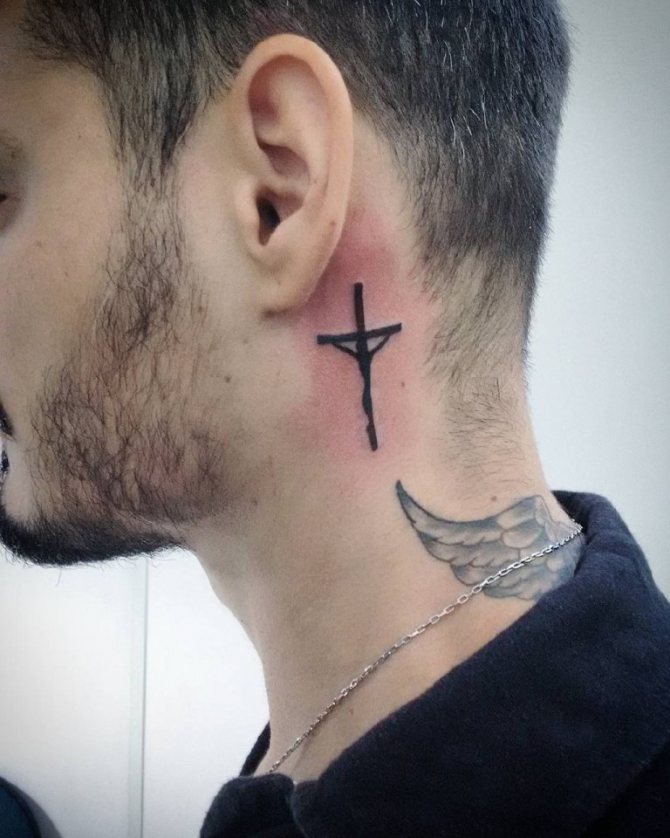 La croix catholique signifie l'union du divin et du monde, selon le Nouveau Testament. Le plus souvent, le symbole est appliqué dans un style minimaliste et ressemble à une croix noire avec des lignes fines.