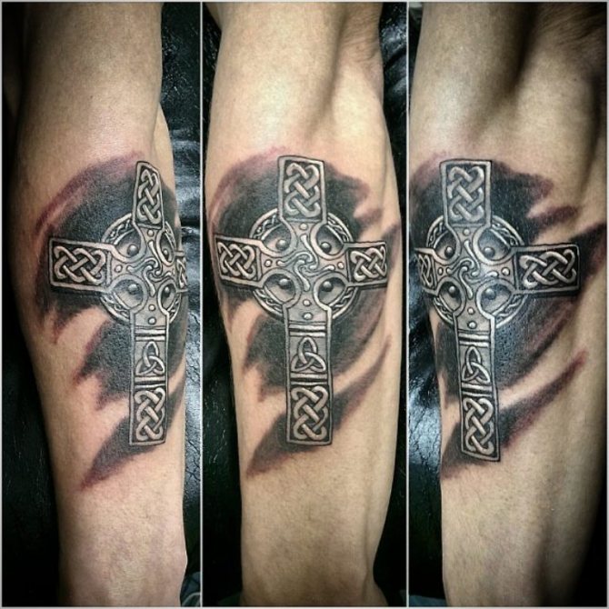 Celtique - courant principalement en Écosse et en Irlande, où il est un symbole de foi et d'héritage. Il se distingue des autres par son graphisme particulier composé de nœuds, de boucles et de labyrinthes. Sa signification est liée au cycle sans fin de la vie et de la mort. Par conséquent, les personnes qui choisissent le tatouage de la croix celtique comme talisman corporel font le plus souvent référence à cette signification.