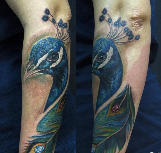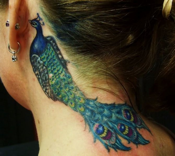 Les hommes aiment également les tatouages de paons en raison de leur couleur. En tant que symbole, pour les hommes, l'oiseau signifie longue vie et bonne santé. On peut également noter la personnification de l'innocence et de la pureté spirituelle par le signe.