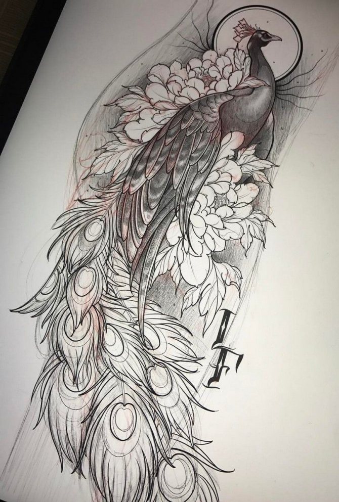 Votre croquis entrera dans la collection des œuvres originales si vous faites preuve d'imagination. Le paon est le symbole de la créativité et d'une imagination débordante. Trouvez votre ligne, votre forme et votre direction. Pour comprendre ce qui est le mieux pour vous, concentrez-vous sur la signification individuelle du symbole. Plus les interprétations résonnent dans votre esprit, plus il sera facile pour l'artiste de travailler sur l'esquisse.
