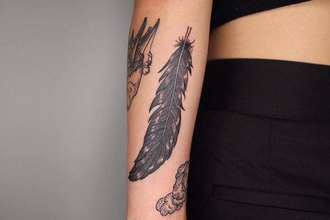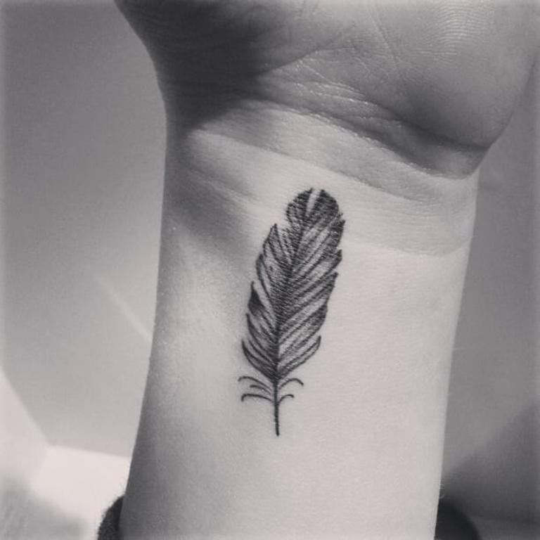 Tatouage de plumes pour les filles - sagesse, légèreté et beauté