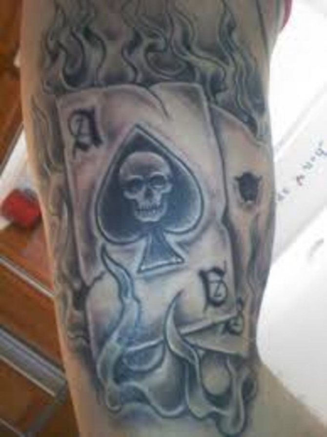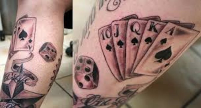 Le tatouage des cartes est très symbolique. On pense qu'il peut apporter de la chance dans les situations difficiles et dans les affaires. Ce tatouage peut être vu sur une personne qui n'a pas peur du risque.
