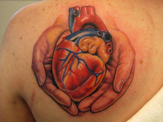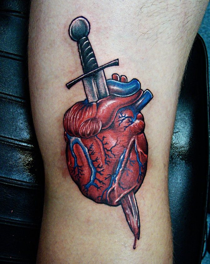 Un cœur "anatomique". Tout le monde ne peut pas dépeindre un tel cœur. En règle générale, il est tatoué par des personnes qui ont ou ont eu une maladie cardiaque.- Coeur avec trèfle - Un tatouage ancien. C'est un signe d'immortalité spirituelle.