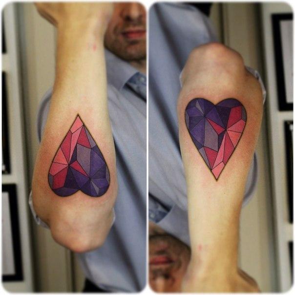 Mais le symbole du cœur dans un tatouage est utilisé non seulement par les filles, mais aussi par les garçons. Tous souhaitent exprimer leurs sentiments, dire au monde leur affection ou leur souffrance par amour. Ces tatouages sont très populaires chez les jeunes, car le cœur est un symbole d'amour.
