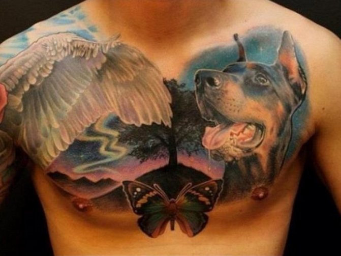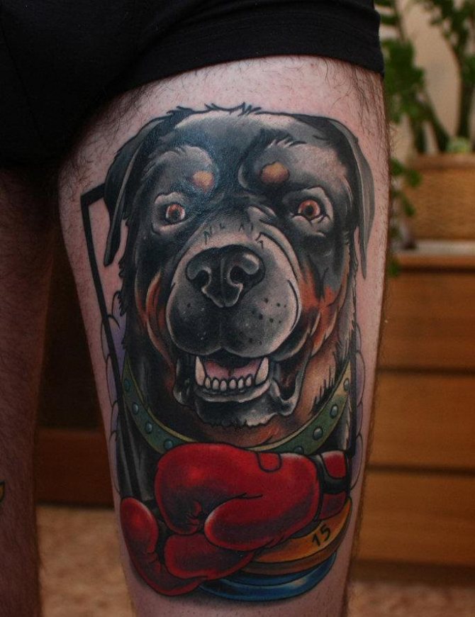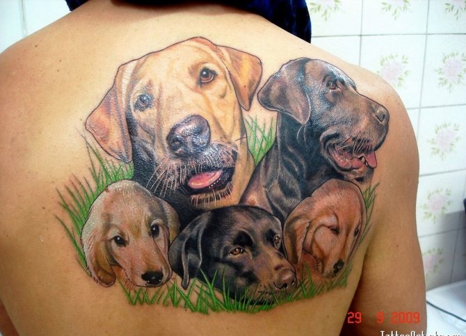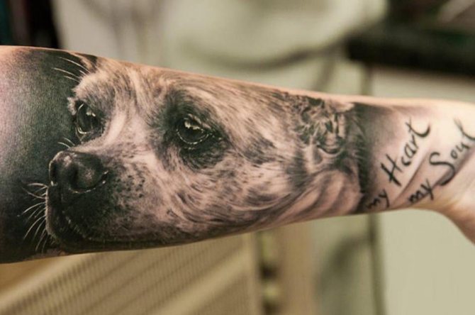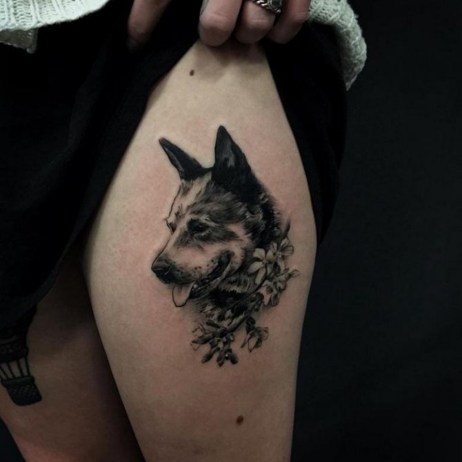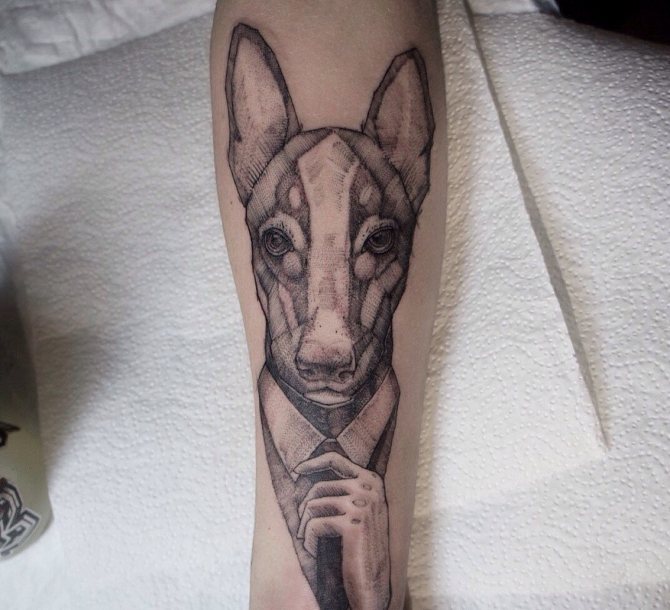 Parmi les animaux, les loups ou les renards ainsi que d'autres représentants du monde animal sont populaires. L'un de ces choix était le chien, symbole de loyauté, de courage, d'amitié et de sincérité. Dans la plupart des cas, le tatouage de chien est utilisé par les hommes, mais les filles ne sont pas exemptes de ce genre d'images, les rendant plus délicates et féminines. Un tel tatouage est souvent perçu comme un talisman ou une amulette. Lors du choix d'un croquis, il est important de déterminer la race du chien, car la valeur du tatouage en dépend directement.