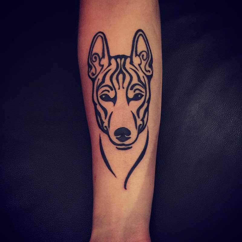 Ce style convient mieux aux images de chiens de grande taille. La ligne tranchante et tourbillonnante d'un motif tribal signifie l'ancienne relation entre les humains et les chiens et peut être réalisée en grand ou en petit. De plus, ces motifs ont toujours un aspect unique et peuvent très bien se marier avec d'autres tatouages tribaux.