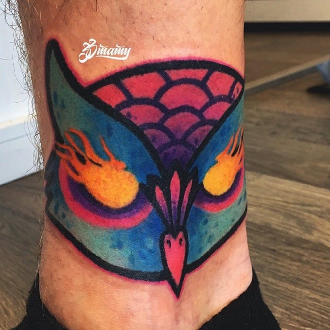 Une grande partie de la signification d'un tatouage de chouette dépendra de l'emplacement choisi. Le tatouage d'une chouette sur la jambe gauche dira ce que le possesseur est enclin à l'auto-analyse. Si le tatouage est représenté sur la jambe droite, il est fort probable que la personne ait choisi son propre chemin dans la vie et soit prête à le suivre. De plus, le hibou tatoué chez les filles peut indiquer que le propriétaire du tatouage a tendance à être mystique et à rechercher la connaissance. Un tatouage de chouette sur le poignet servira d'amulette personnelle à son propriétaire.