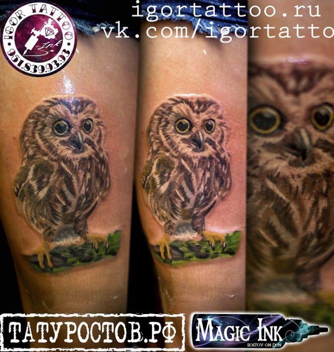 L'orthodoxie donne son propre sens aux tatouages de hiboux - l'athéisme. Les tatouages indiens signifient l'immortalité car les Indiens croient en la renaissance des hiboux après la mort en une autre créature.