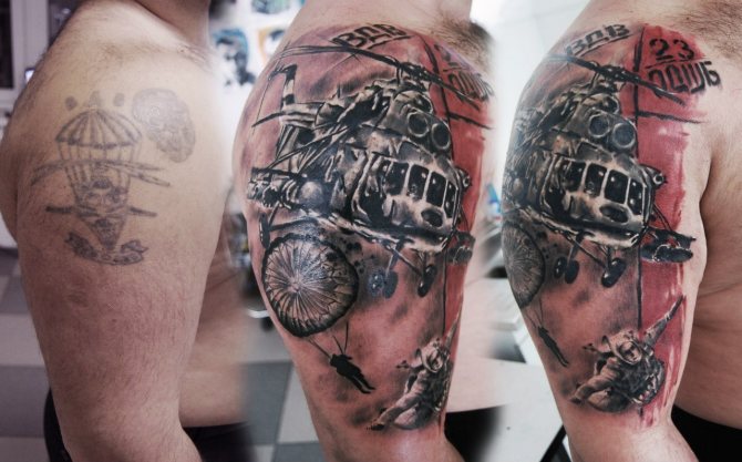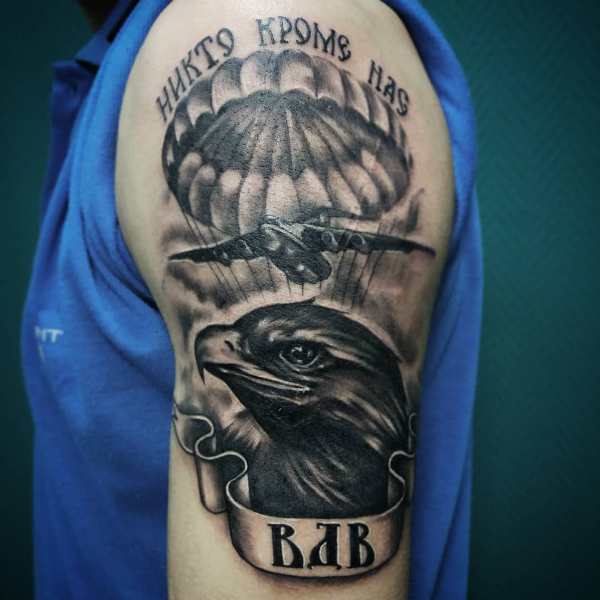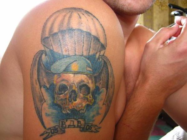 Les tatouages que se font les soldats servant dans les troupes aéroportées sont probablement connus de beaucoup de gens, même de ceux qui ne connaissent pas ce type de troupes. Tout cela a été rendu possible grâce au 2 août, date à laquelle la Russie célèbre la Journée des parachutistes. Les parachutistes à rayures montrent leurs tatouages de l'armée sur leurs épaules. Les tatouages aéroportés comprennent les éléments suivants :