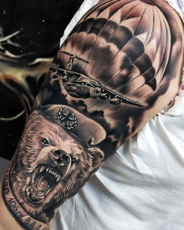 Souvent, les personnes qui ont servi et qui ont décidé de se faire tatouer un tatouage Aéroporté peuvent voir des images d'un ours. L'ours VDV est associé non seulement à la force, la puissance et la capacité de survie inhérentes à cet animal, mais aussi à la vaste âme russe, que l'on sait comparée à cette même bête.