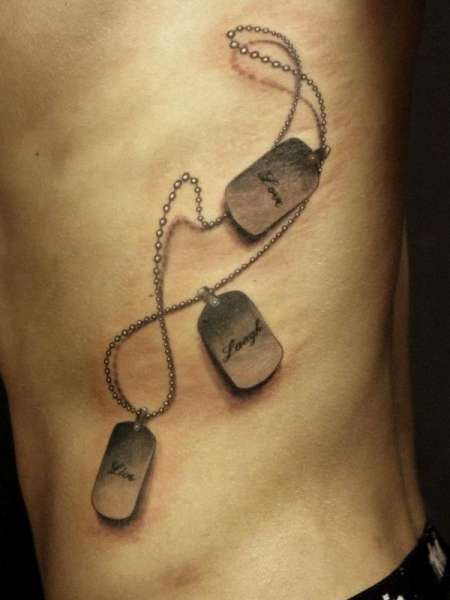 En l'honneur des amis perdus au combat, des camarades soldats se font tatouer ces tatouages pour se souvenir en permanence de leurs amis qui n'ont pas survécu.