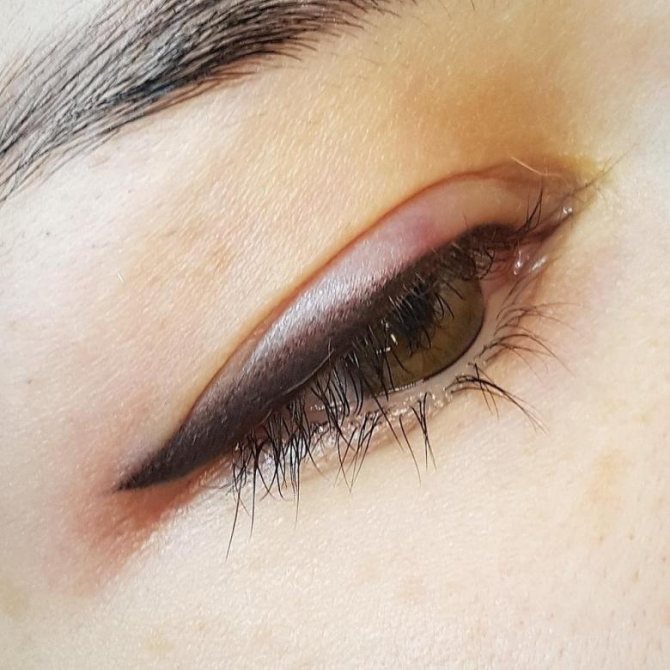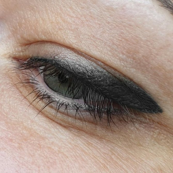 Les bains de vapeur et les saunas sont également à éviter. Cela peut entraîner un ramollissement excessif de la surface des paupières et un décollement prématuré de la peau. Il est également inutile de prendre des bains de soleil pendant un mois, car la couleur près des yeux commence à s'estomper. Les clients courent le risque d'obtenir une couleur complètement différente immédiatement après un bain de soleil. Ainsi, dans le cas du tatouage de la flèche oculaire, les soins post-procédure sont extrêmement importants. Si les règles ne sont pas respectées, il est souvent nécessaire de répéter la procédure. Voici comment maquiller les yeux après un tatouage en forme de flèche.