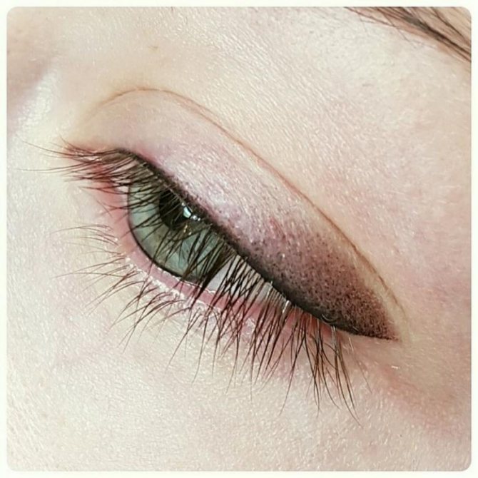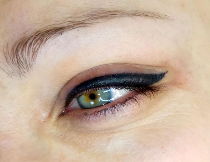 Immédiatement après la fin du traitement, la zone du visage sur laquelle le tatouage est appliqué devient trop lumineuse et enflammée. Par exemple, si les flèches ont été peintes à l'encre brune, elles apparaîtront noires ou marron foncé pendant les deux premiers jours. Les paupières sont susceptibles d'être gonflées. Ce n'est pas du tout surprenant, car l'épiderme est perforé en de nombreux endroits au cours de la procédure. Le gonflement et la rougeur disparaîtront en quatre jours.
