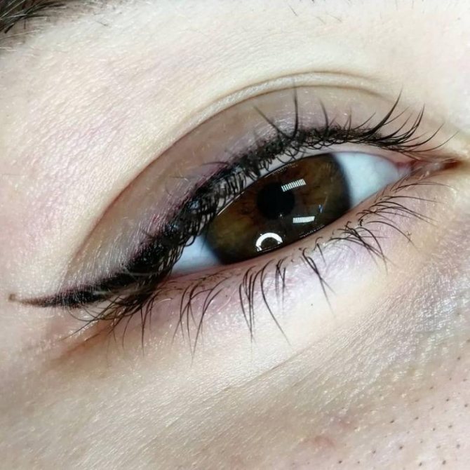 Mais, malheureusement, tout le monde n'est pas satisfait du résultat. Afin de prendre une décision importante sur la nécessité de cette procédure, il est nécessaire d'être bien conscient de toutes les conséquences possibles. Afin de créer un maquillage permanent qui ne s'effacera pas pendant longtemps, les artisans injectent une couleur spéciale sous la peau. Par essence, le maquillage permanent est un tatouage coloré. Le maquillage des yeux peut être tatoué en peignant des flèches en plus du remplissage de l'espace inter-paupières, avec ou sans un procédé de plumage.