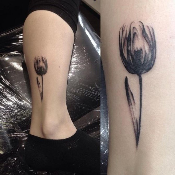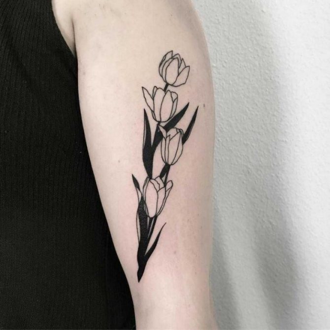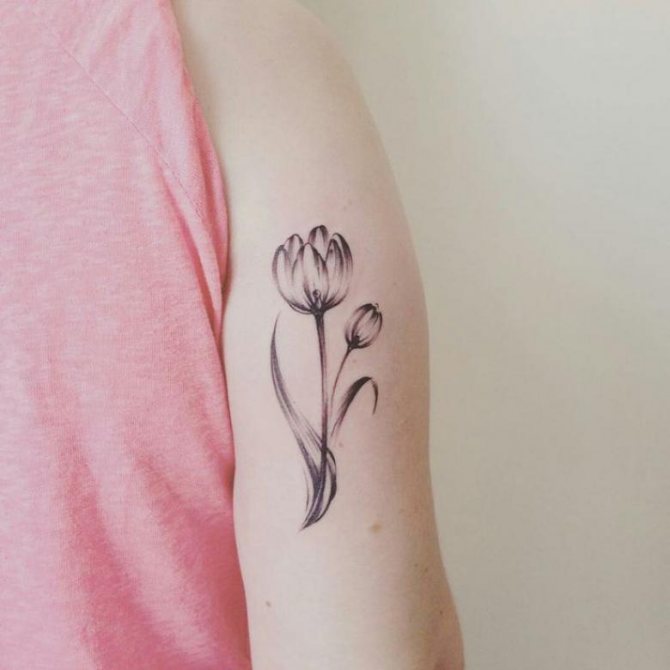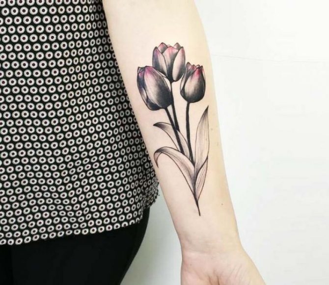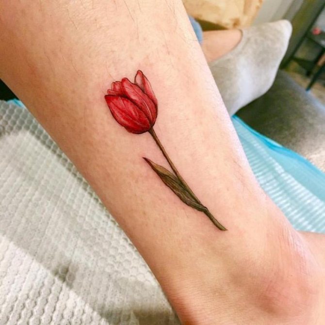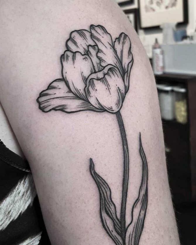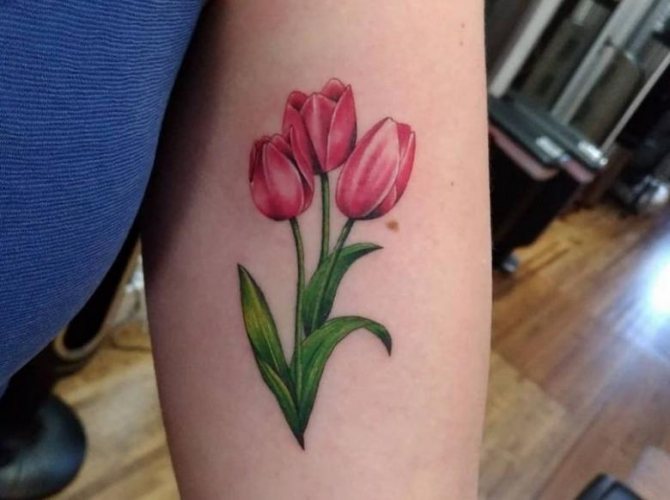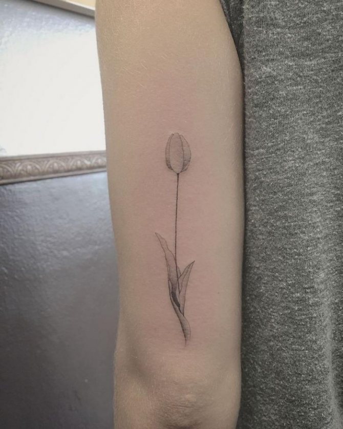 Vous pouvez également, si vous le souhaitez, choisir une image corporelle dans le style du réalisme. Le tatouage de tulipe peut être fait sur le bras, la jambe, l'épaule, le poignet et d'autres parties du corps. Tout dépendra de la taille souhaitée de l'image.