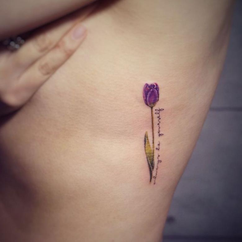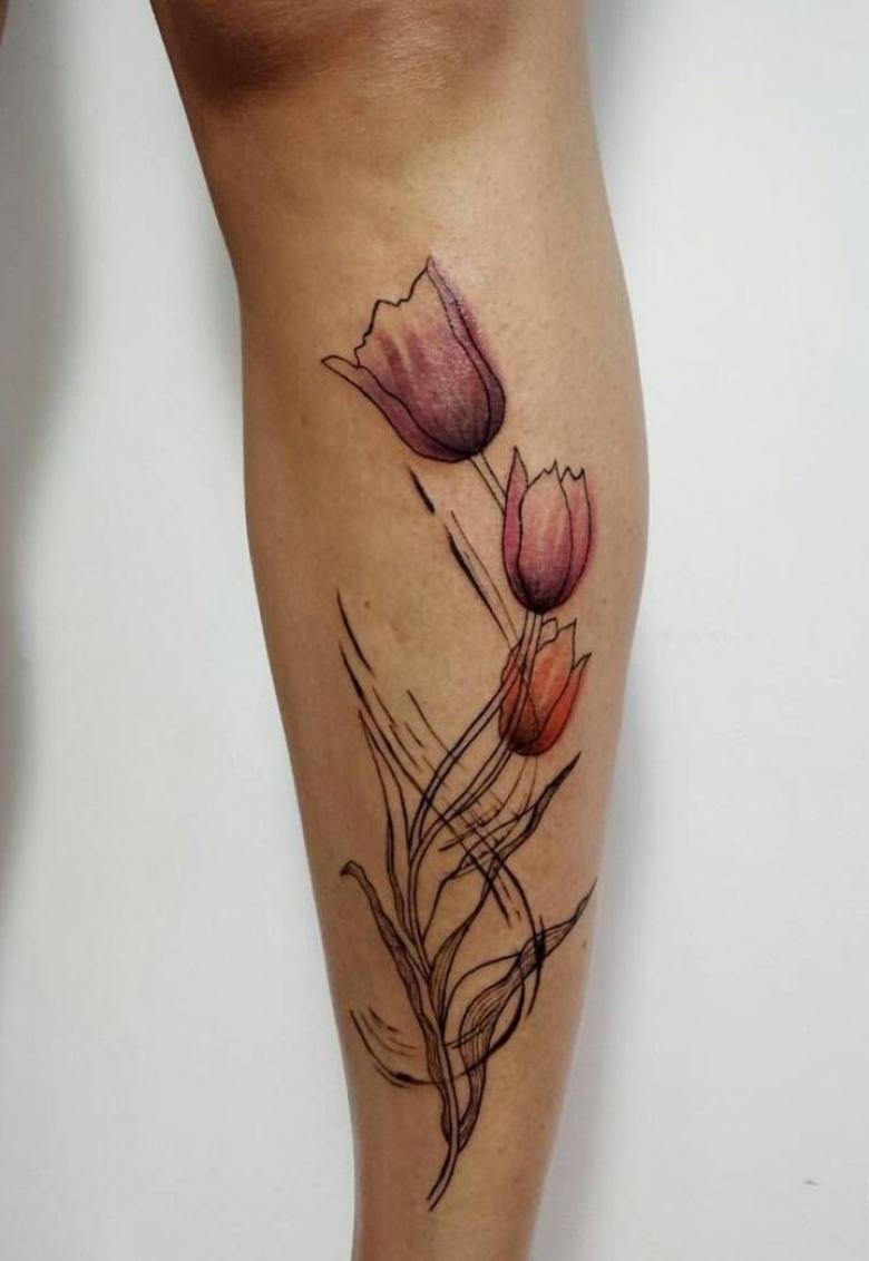 Le tatouage de tulipe est parfait pour une personne positive et ouverte d'esprit qui n'a pas peur de montrer ses sentiments et ses expériences.