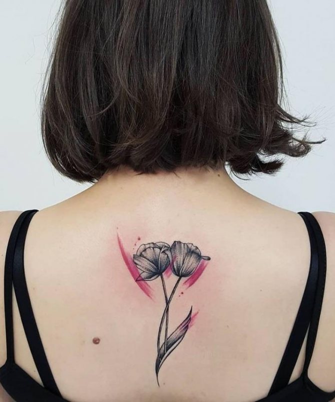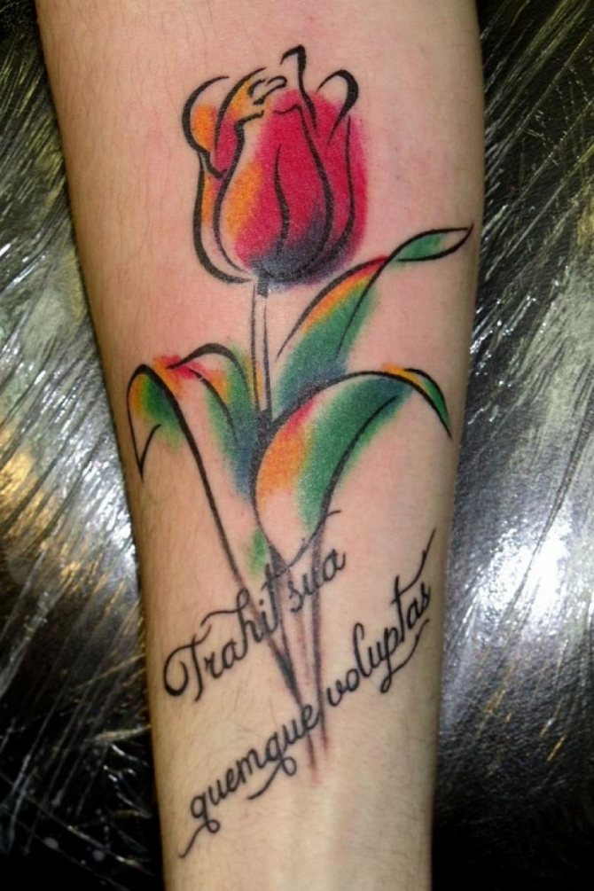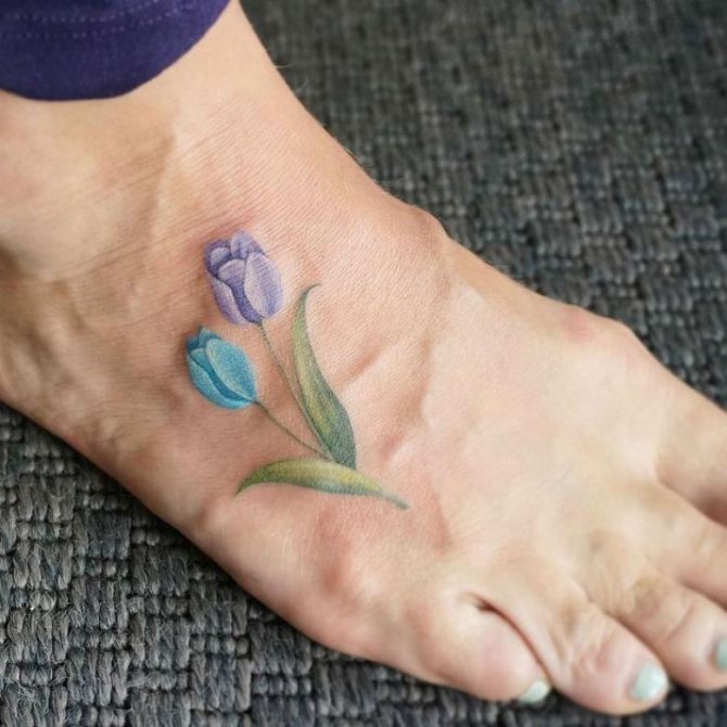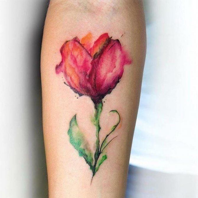 Avant de vous rendre dans un studio de tatouage, assurez-vous de choisir le croquis qui vous plaît le plus. Un tatouage original de tulipe à l'aquarelle est une option. Un tel design sera coloré et original. Le tatouage lumineux est très similaire au dessin à l'aquarelle.