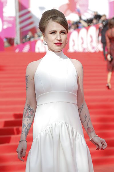 La fille s'est fait ce tatouage lorsqu'elle sortait avec Gleb Samoilov (groupe Agata Kristi). "Ce cœur est un souvenir de mon premier amour", dit le cinéaste. - Je n'avais jamais ressenti ça avant lui. Pas pour n'importe qui. Jamais. Je ne pensais même pas que l'amour pouvait être aussi fort". Elle a commencé à se décorer de tatouages à l'âge de 15 ans. D'abord, c'était une croix sur son estomac. Puis un hybride complexe d'une croix et d'une clé de sol sur son épaule droite. Sur son épaule gauche se trouve une photo de Caligula, et elle a déclaré que l'empereur romain est son frère spirituel. Et elle a promis que si elle gagnait le prix du Festival de Cannes, elle se ferait tatouer une branche de palmier juste sous son profil. Son avant-bras gauche est également couvert de tatouages, avec une vigne et une feuille déjà "poussées" dessus.