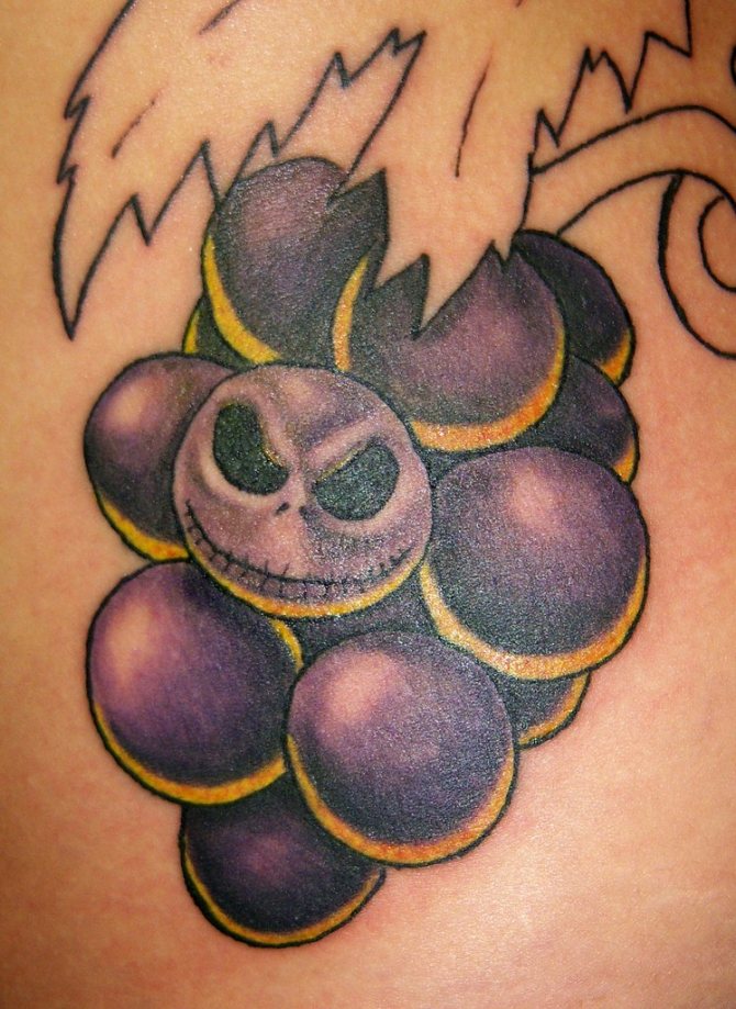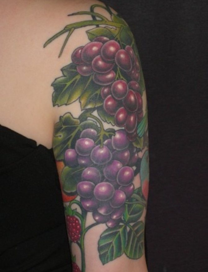 Un tel tatouage distingue son propriétaire par un raffinement et une originalité particuliers. Le raisin a toujours été associé à la richesse et à la fertilité. Dès les premiers temps, les gens fabriquaient du vin que seule la classe sociale supérieure pouvait s'offrir.
