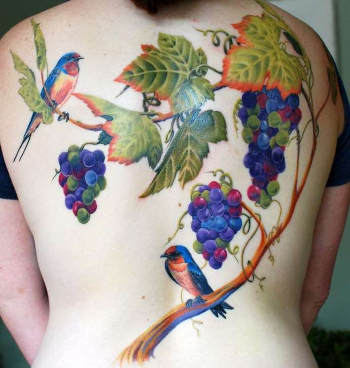 Les amateurs d'ornements végétaux ainsi que d'images de baies et de fruits sont invités à regarder de plus près le tatouage de vigne.