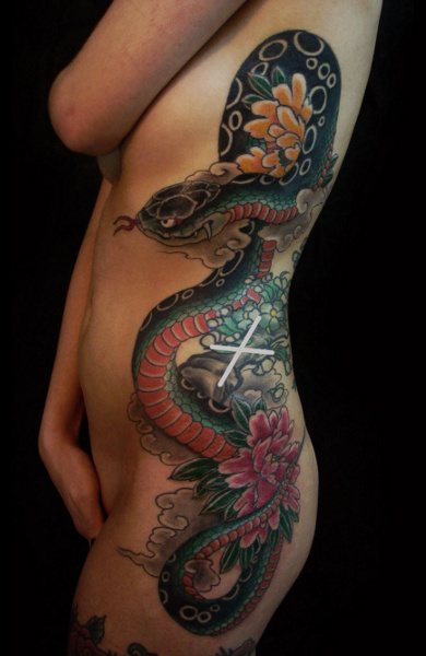Les dessins ressemblent souvent à ceci : deux serpents sont entrelacés formant un nœud très fort (fort comme la relation d'un couple), la deuxième option est aussi un serpent qui, en volant autour du cœur signifie que le partenaire a conquis le cœur de la fille. En général, le serpent sur le corps de la femme ne doit pas être gros afin de rendre la fille aussi sexy que possible.