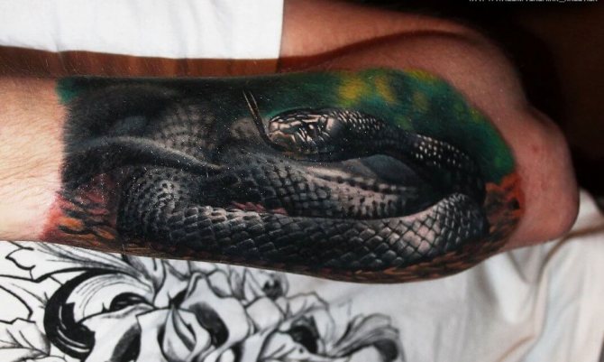 En même temps, il y a une autre signification - le mal, la méchanceté (parce que l'un des noms du serpent - vipère), la sophistication. Certains utilisent le tatouage pour montrer leurs qualités négatives, sans se soucier de ce que les autres pensent d'eux.