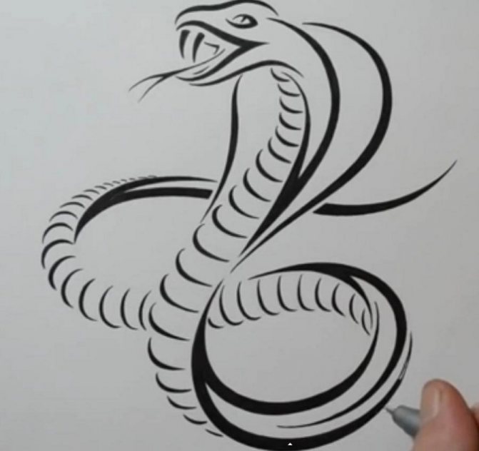 - D'autre part, un homme essaie de devenir plus calme et plus calculateur, comme un serpent à la chasse. On pense que le dessin... donne l'équilibre, l'intelligence et l'harmonie mentale.