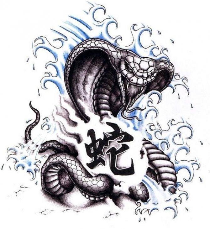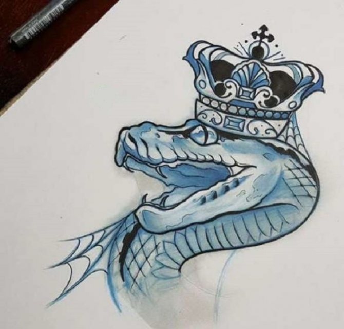 - Le cas le plus fréquent est celui d'un homme qui se fait un tatouage similaire - il s'associe à ce reptile et souhaite acquérir les mêmes traits qui lui sont propres : colère, agressivité, prédateur, prudent, etc.