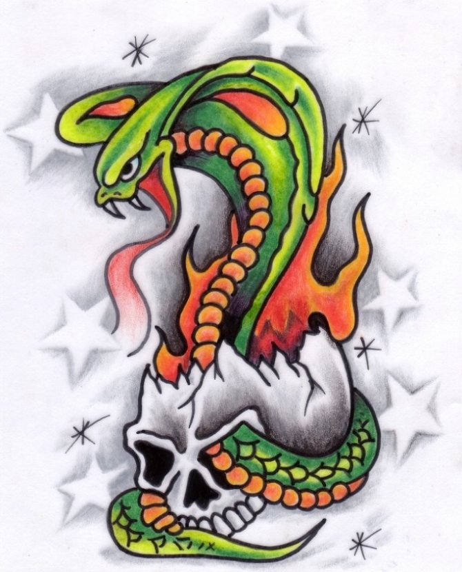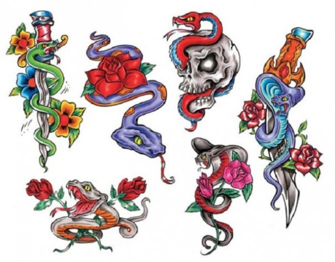 Tatouage de serpent : la signification générale, la désignation sur la zone, photo
