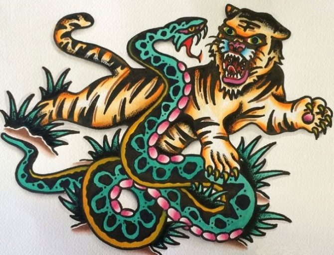 - Un serpent prédateur - un symbole de "vengeance". Ce tatouage est porté par quelqu'un qui est vindicatif et qui veut se venger de quelqu'un.