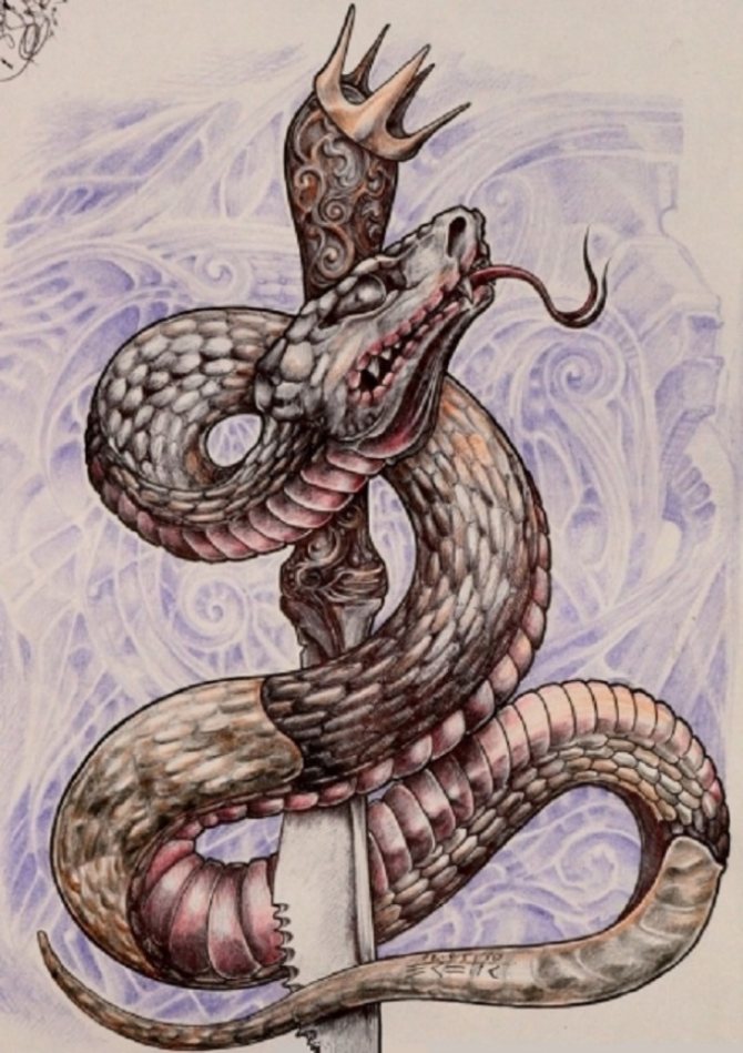 le serpent et la dague - un symbole de danger, de préparation à la bataille, d'agression ;
