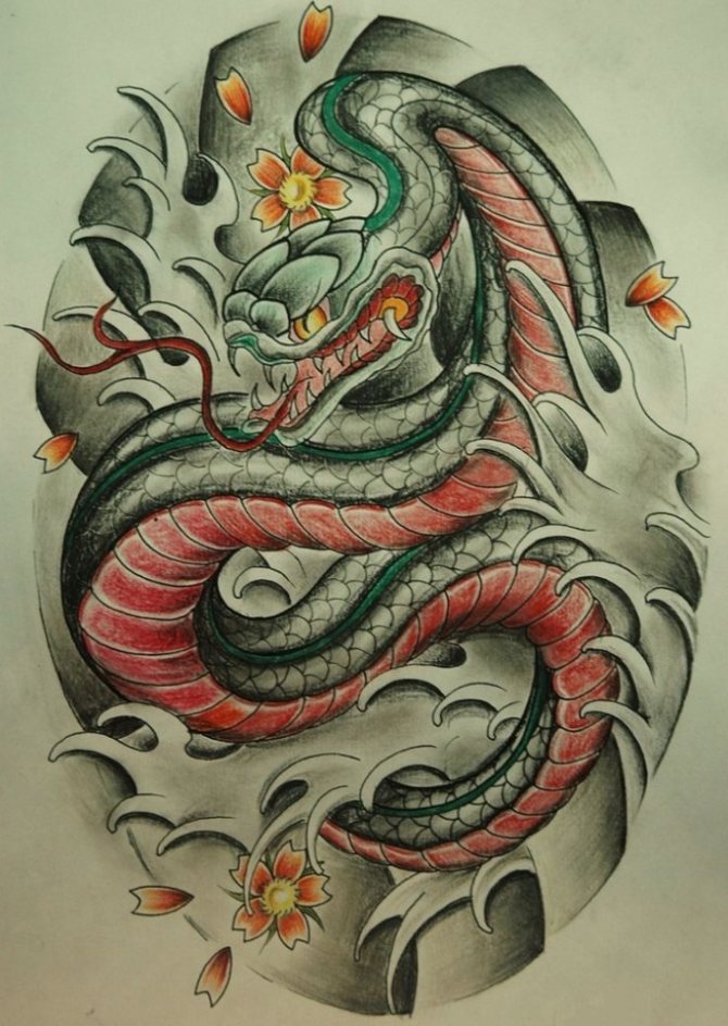 Tatouage de serpent : idées, dessins, modèles, pochoirs, photos