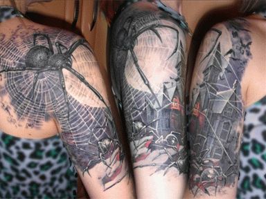 Un croquis avec une araignée peut être trouvé dans le portfolio de tout salon. Le dessin est entré dans les classiques de l'art du tatouage. Elle est exécutée dans une variété de poses.