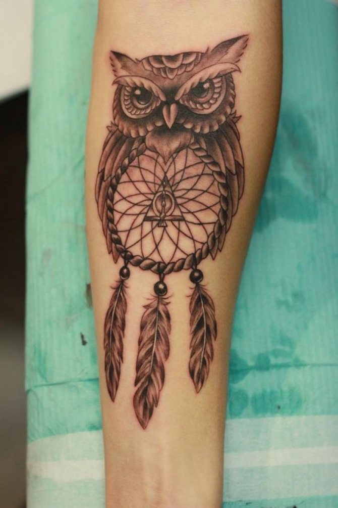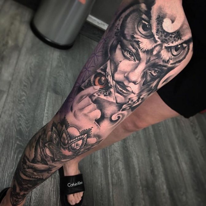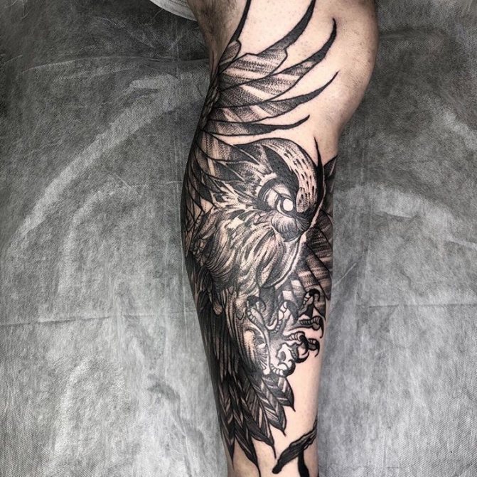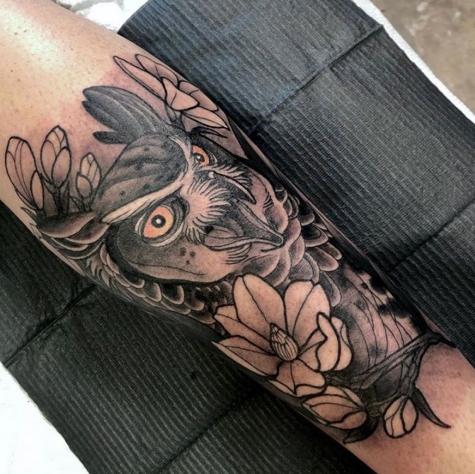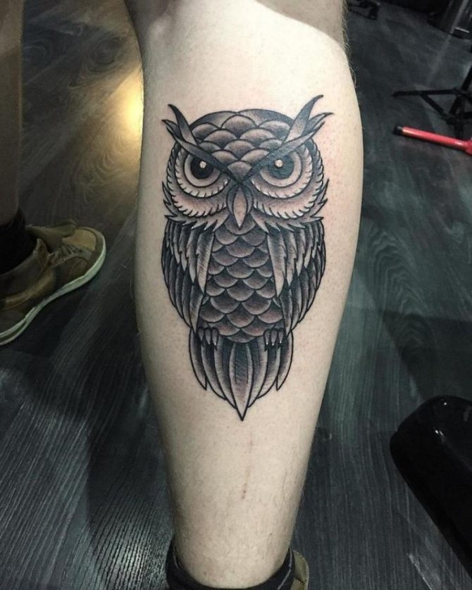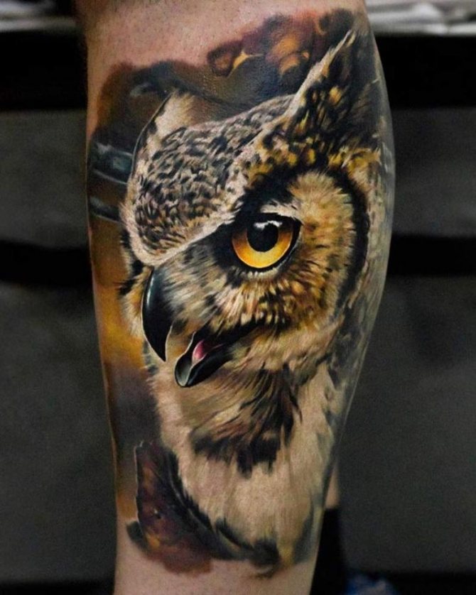 - Les filles appliquent le plus souvent le tatouage de chouette sur la hanche, mais pour les hommes caractérisés par l'image sur le tibia, le mouvement crée une illusion réaliste d'un vol d'oiseau nocturne ;