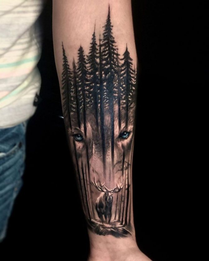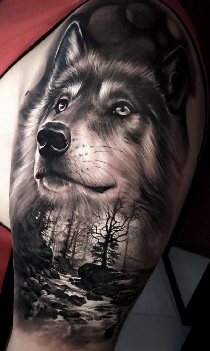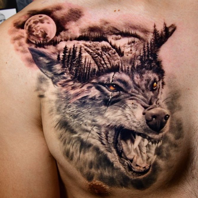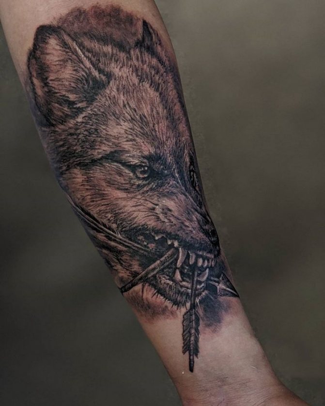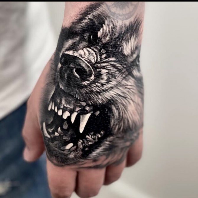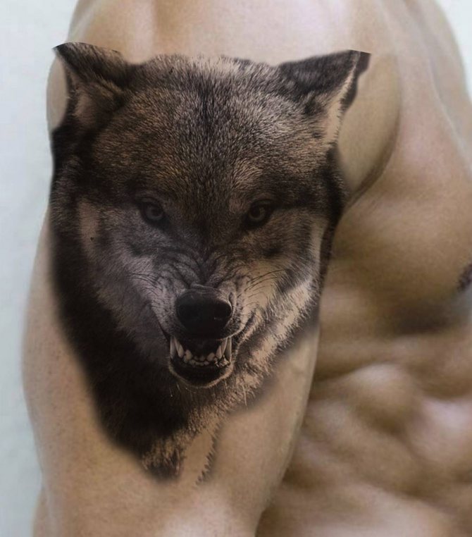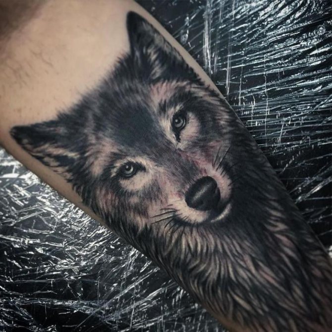 L'une des tendances les plus populaires pour le tatouage de loup est le style réaliste. L'image est principalement réalisée en une seule couleur. De tels tatouages sur le bras sont très efficaces. Sur le corps masculin, elles symbolisent l'agressivité et la colère.