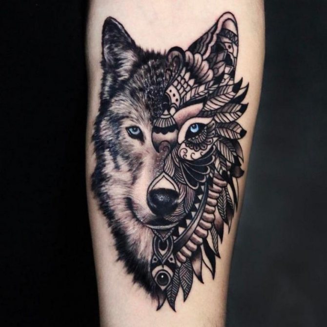 Loyauté envers ses camarades. Un seul partenaire tout au long de la vie et la volonté d'endurer toutes les difficultés pour le bien-être de la meute - amenez ce prédateur avec un homme qui est prêt à se faire tatouer un loup.