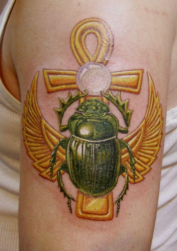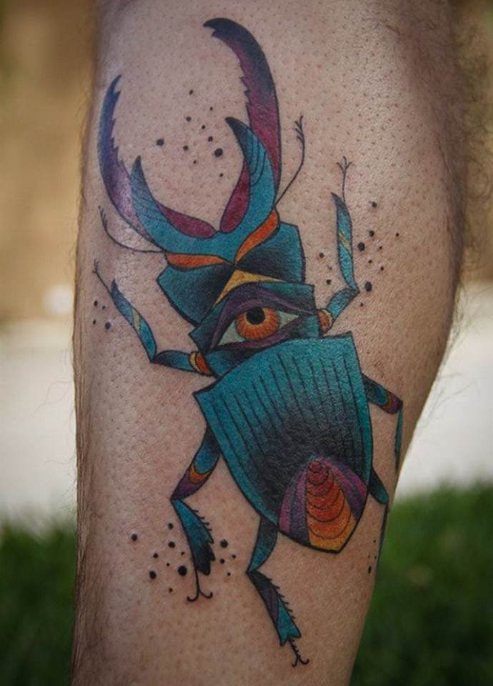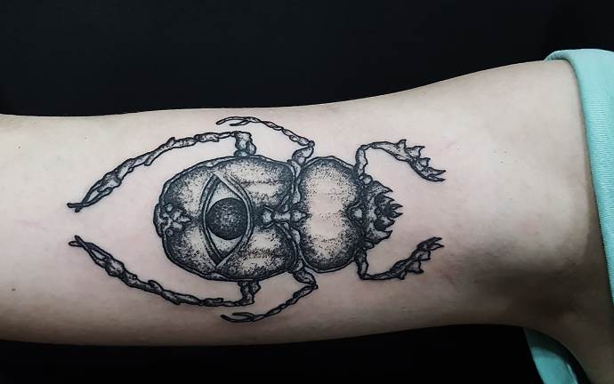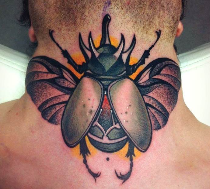 Parmi les insectes qui peuplent le monde qui entoure l'homme, les coléoptères ont toujours occupé une place particulière, se distinguant par leur apparence et leur mode d'existence. En plus d'être consommés, certains sont devenus des symboles religieux et culturels qui ont joué un rôle important dans l'environnement humain. Les insectes accompagnent toujours non seulement les habitants des campagnes mais aussi ceux des villes, partout, apparaissant sur les publicités, les emblèmes, la littérature et les films. Le tatouage de scarabée dénote la diligence et la détermination, le renouveau et la mise en œuvre de ce qui est souhaité.