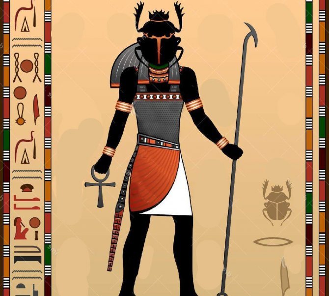 Le dieu Scarabée fait référence aux symboles solaires, que de nombreux peuples perçoivent comme la prospérité, la victoire sur le mal et la présence de la bonne fortune. Le lever du soleil que les gens observent chaque matin est un signe du renouvellement quotidien de la vie, qui apporte succès, chance et prospérité. On peut voir des images du scarabée sur les murs des temples, sur divers objets, notamment des vêtements, des appareils utilisés dans la vie quotidienne, etc.