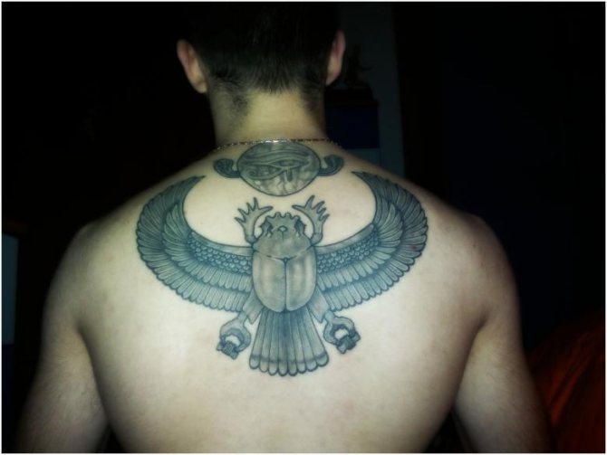 Les hommes choisissent le plus souvent l'image d'un scarabée comme symbole de prospérité, d'abondance et de chance. Dans les temps anciens, l'image de l'insecte rappelait aux gens la puissance divine du créateur, son pouvoir. Pour l'homme moderne, l'idée est associée à la chance, au décollage d'une carrière, à la naissance d'une bonne idée. Le tatouage avec un scarabée - un signe du désir d'atteindre un grand succès, de se réaliser dans l'entreprise, en donnant un profit stable.