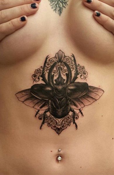 Le tatouage scarabée pour les filles joue le rôle d'un talisman protecteur. Il les protège du malheur et de la malchance, les protège des envieux et de toutes sortes de négativités.