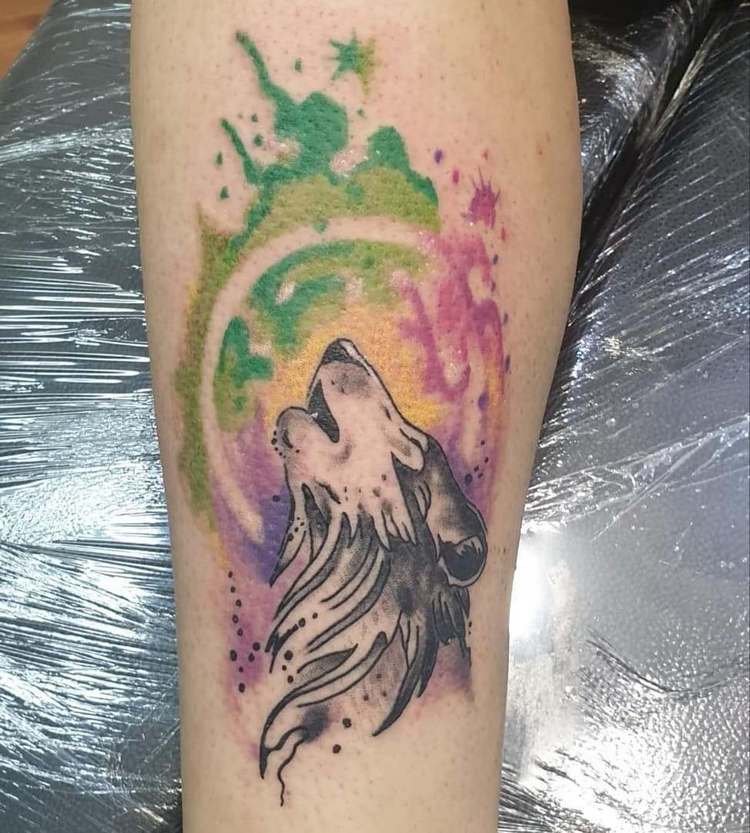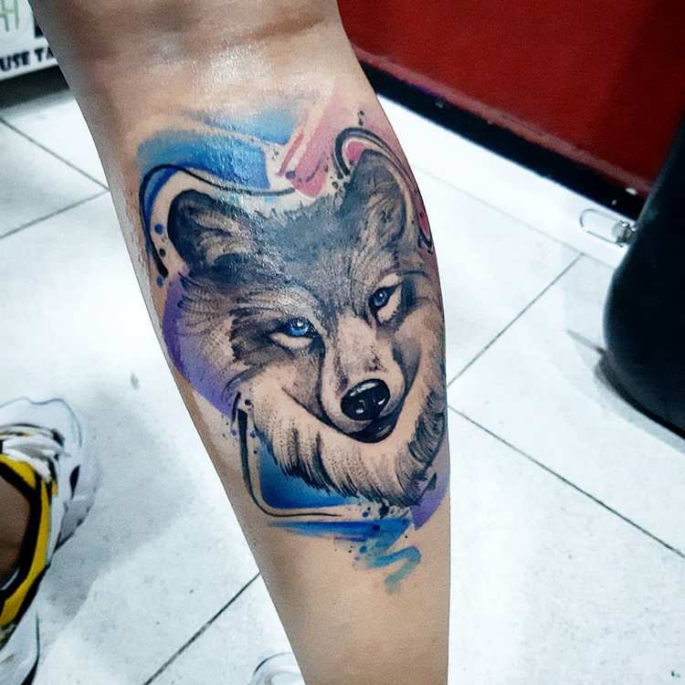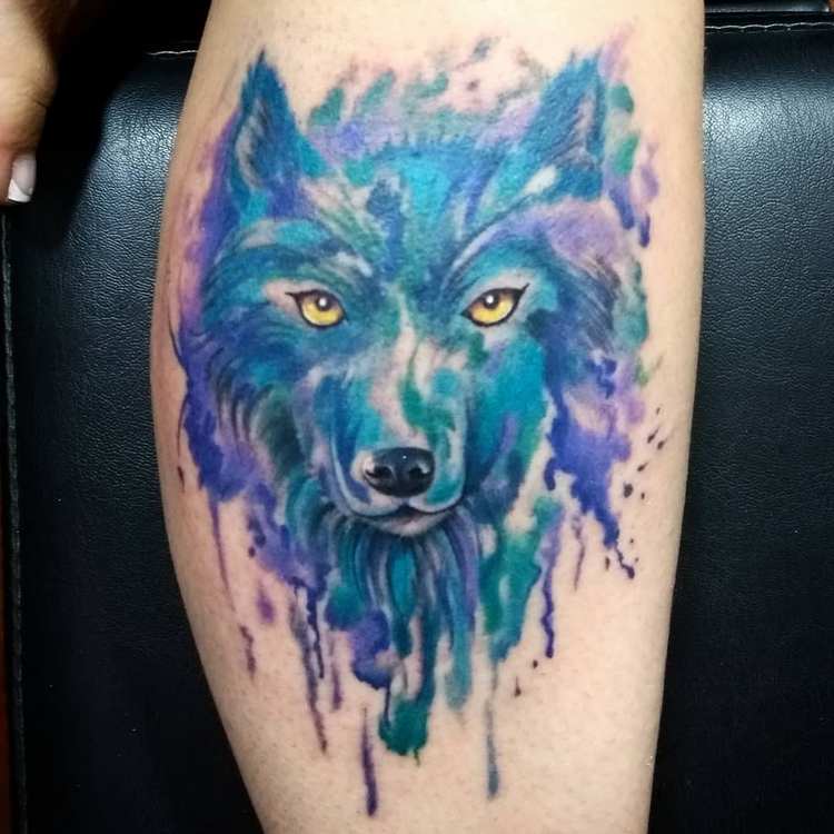 Loup féroce et style aquarelle, il semblerait que ce soit deux choses incompatibles, pourtant ces tatouages existent et sont même très beaux. C'est presque le seul style dans lequel le gris de la bête peut aller du bleu au violet.