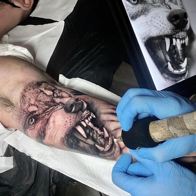Que pouvons-nous dire du tatouage de loup sommaire ? Il y a eu une idée, un croquis, un dessin, et ainsi de suite. Mais il n'y a pas à souffrir, quelle couleur mettre en valeur, comment les cheveux vont s'allonger, tout est simple et ultramoderne.