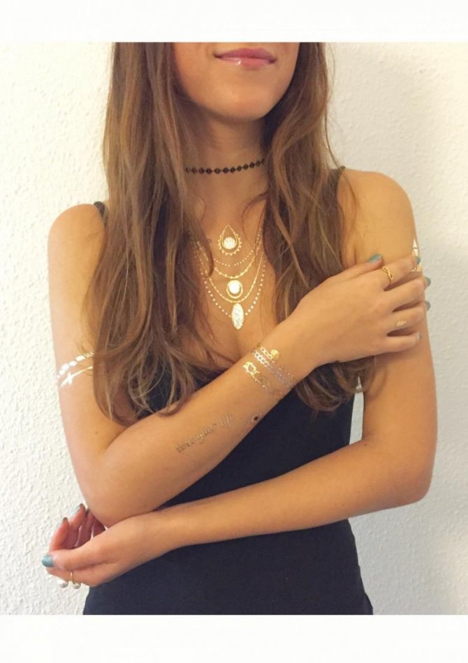 Les tatouages en or sont très sexy et luxueux ! Je suis amoureuse de ces motifs brillants et je les commande par paquets.