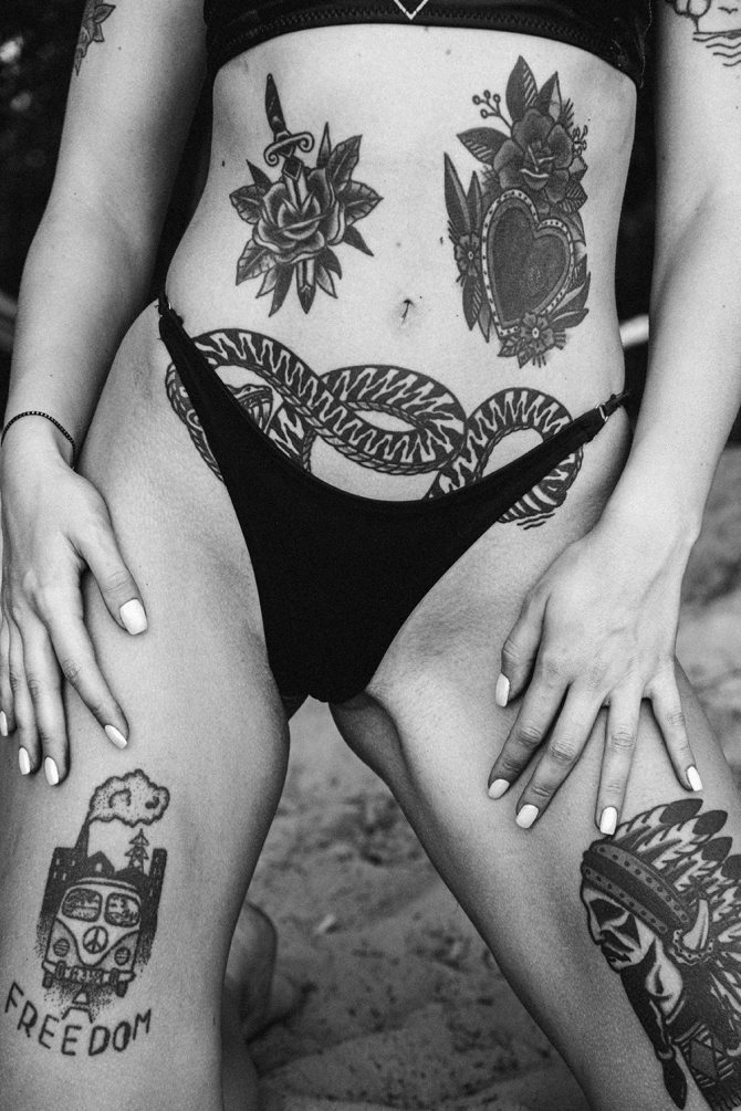 - Les grains de beauté sont contournés pendant le tatouage et cachés dans le motif.