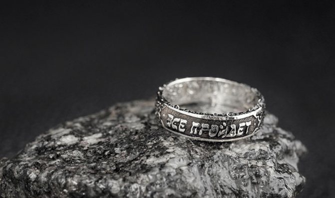 Toutes les choses passent et ceci passera en latin - une inscription gravée sur la bague, qui est le principal attribut conférant à son propriétaire l'élimination de toutes les difficultés et épreuves du parcours de vie.