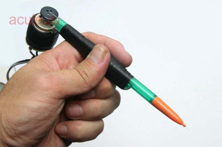 La couleur que vous choisissez n'a pas d'importance. Vous devez y plonger la pointe de l'aiguille de l'appareil allumé pendant une dizaine de secondes, puis l'injecter sous la peau. Ce principe est utilisé tout au long du processus de travail.