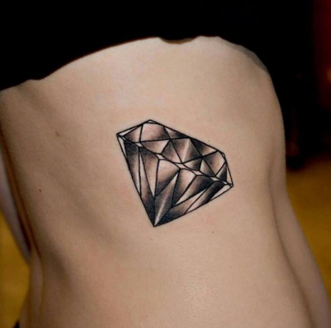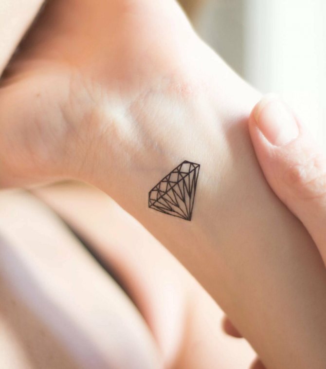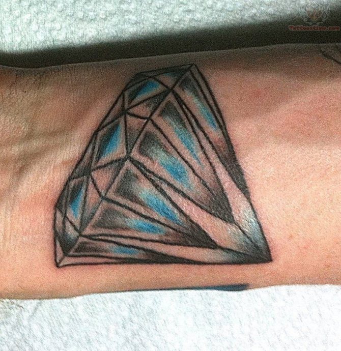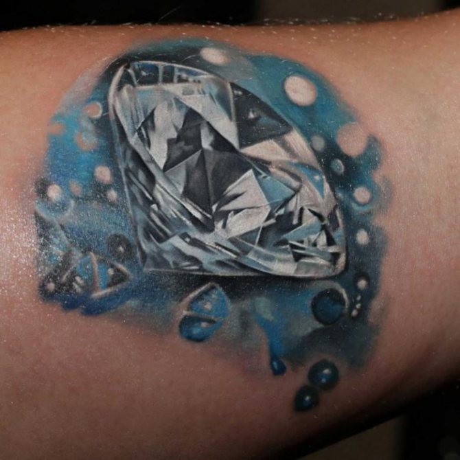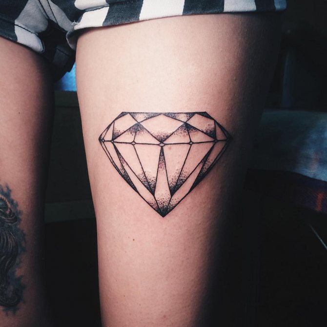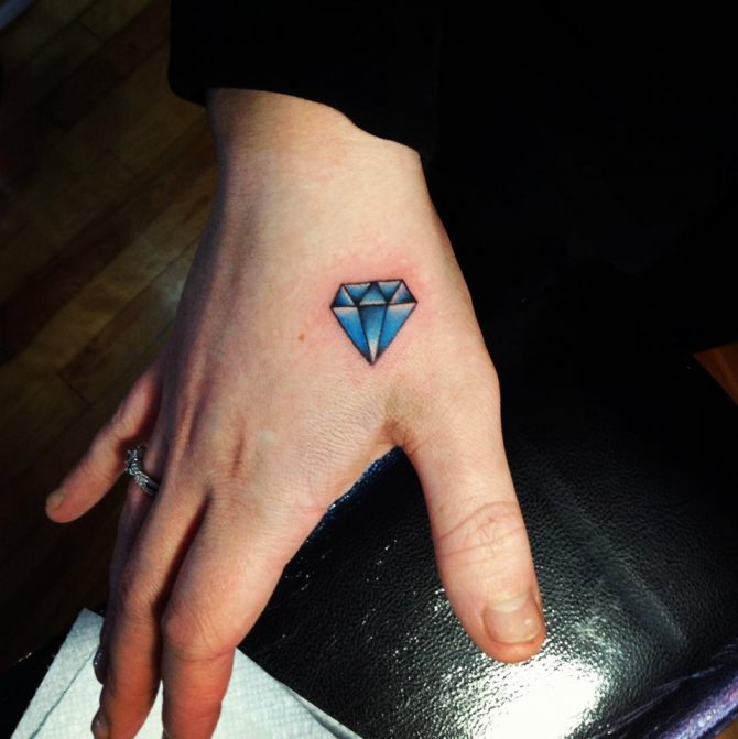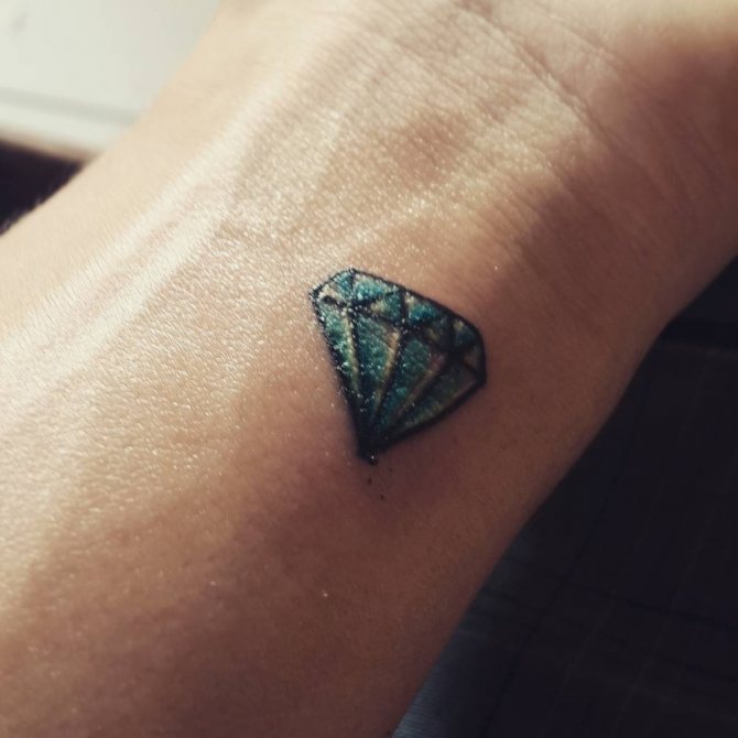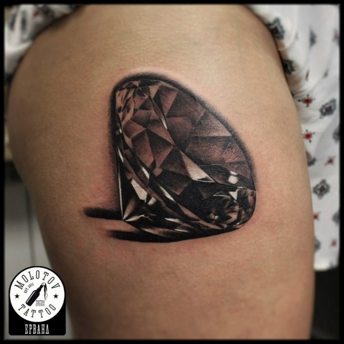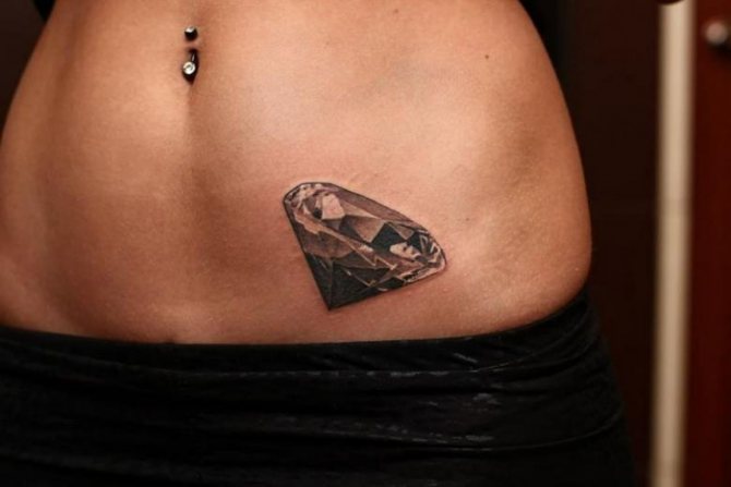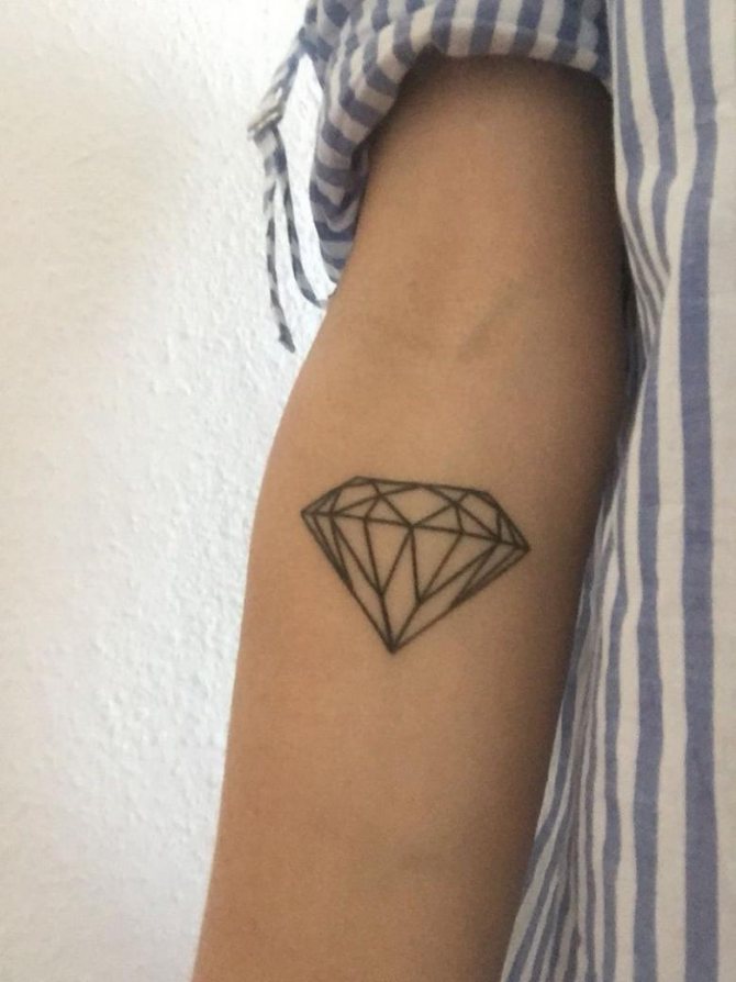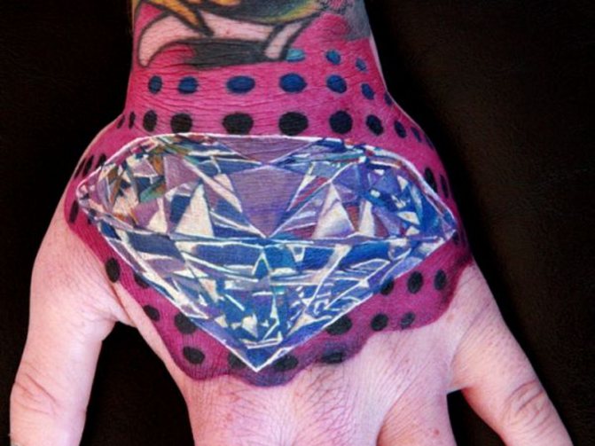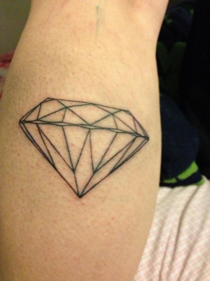 Vous ne pouvez pas détacher vos yeux de l'image colorée d'un tatouage en forme de diamant. Les joailliers aiment cette pierre précisément pour le jeu de couleur et de lumière sur ses facettes. Mais il n'est pas rare de voir une image simplifiée d'un tatouage (Petersburg) en une seule couleur.