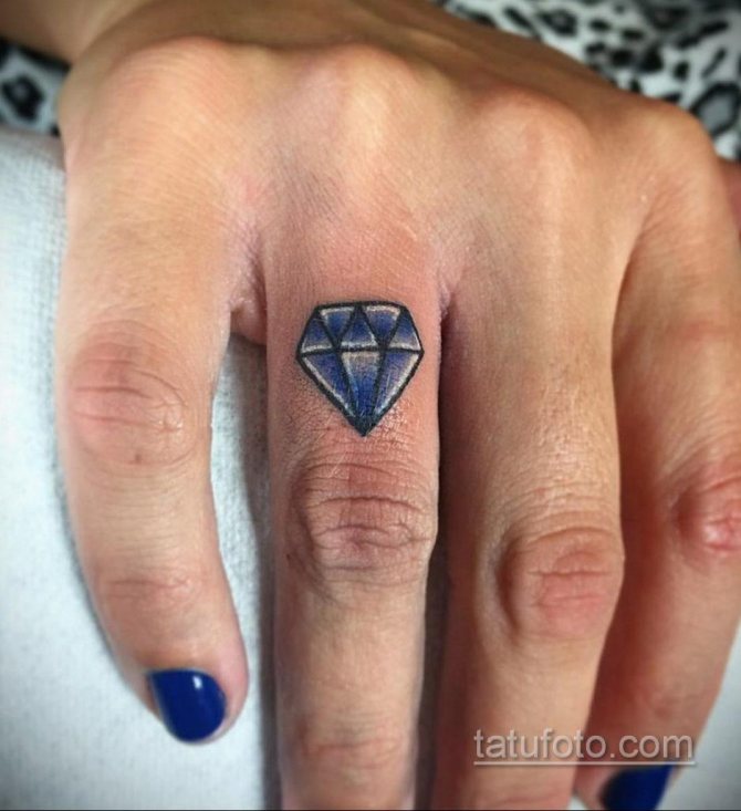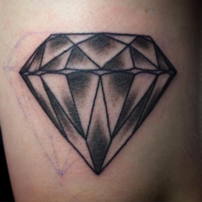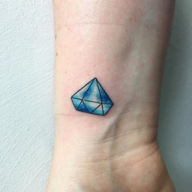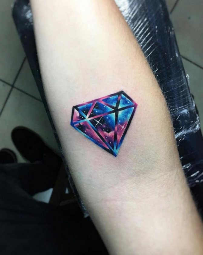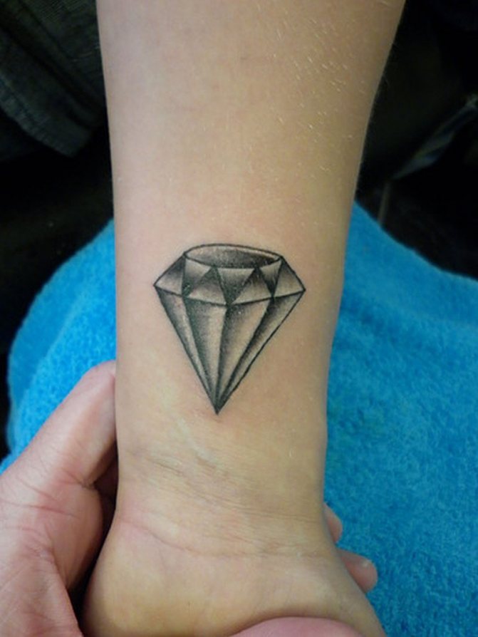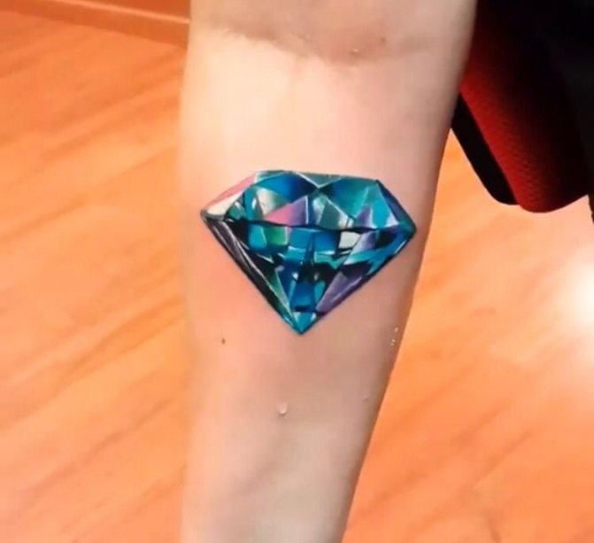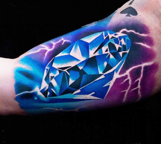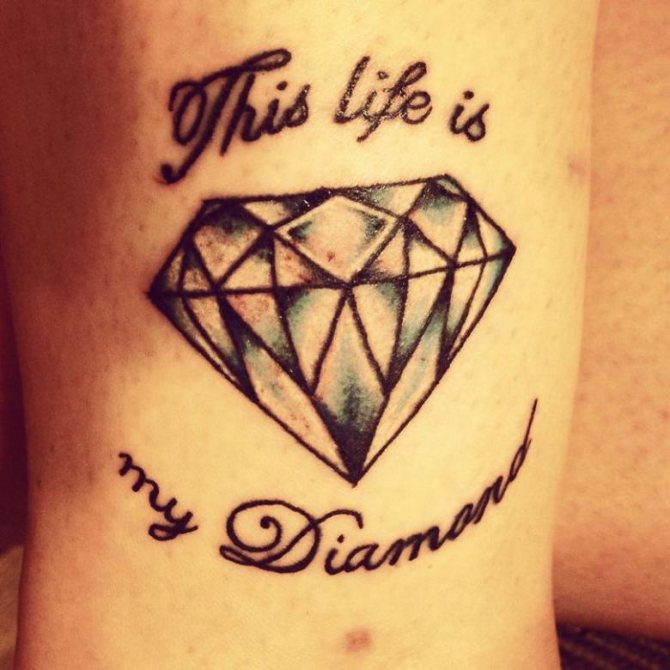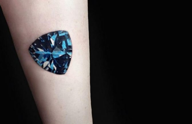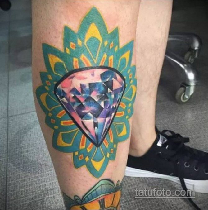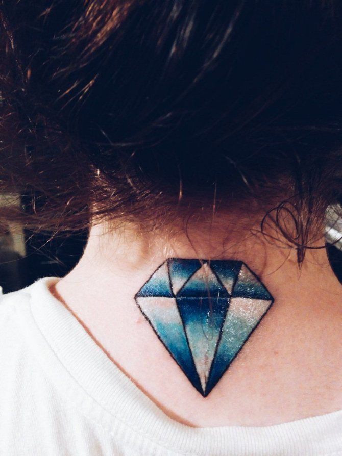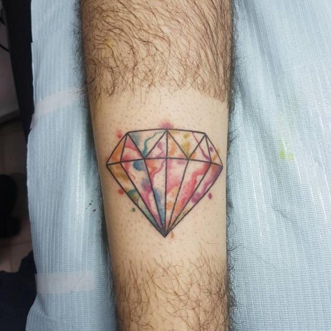 Vous ne pouvez pas détacher vos yeux de l'image colorée d'un tatouage en forme de diamant. Les joailliers aiment cette pierre précisément pour le jeu de couleur et de lumière sur ses facettes. Mais il n'est pas rare de voir une image simplifiée d'un tatouage (Petersburg) en une seule couleur.
