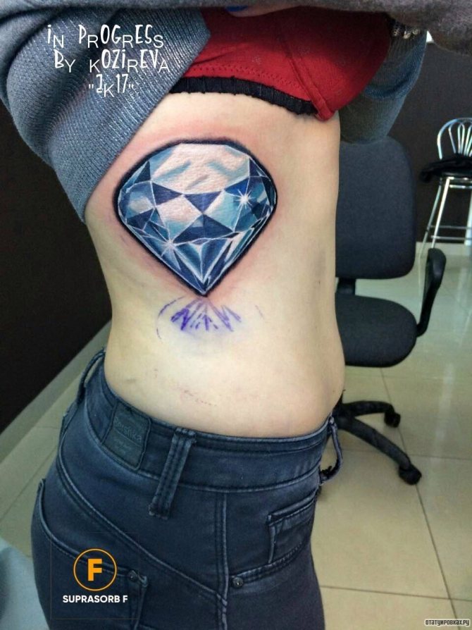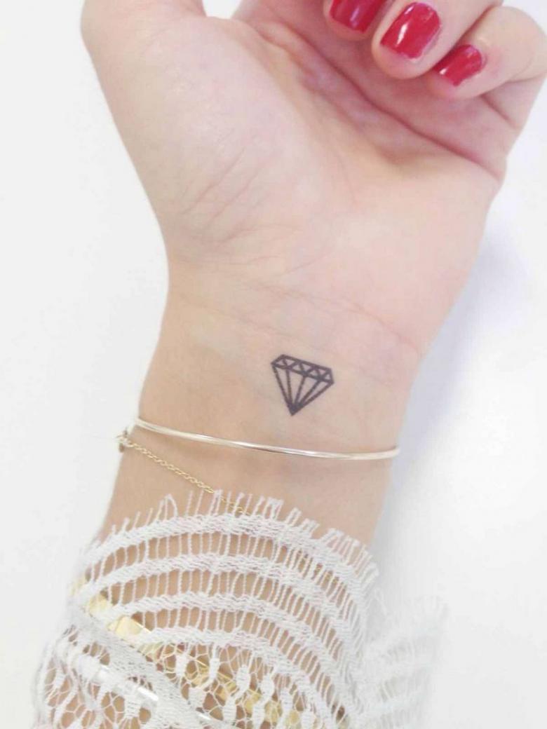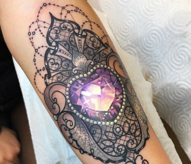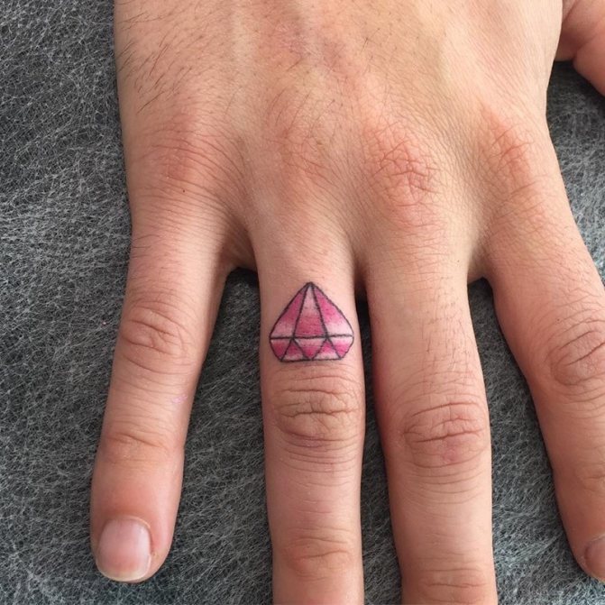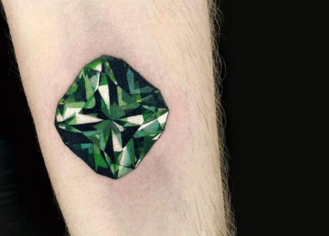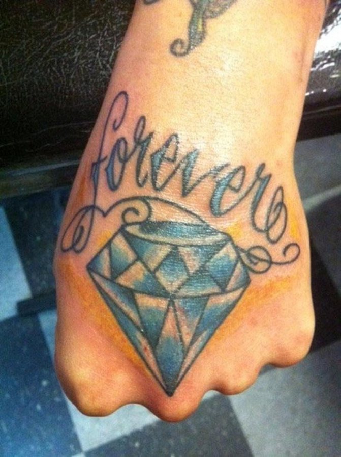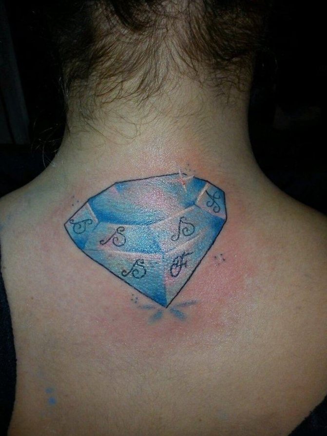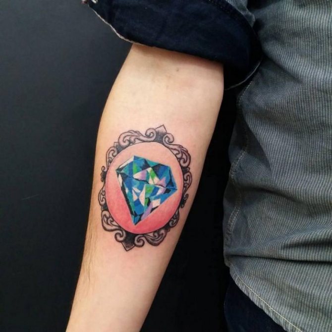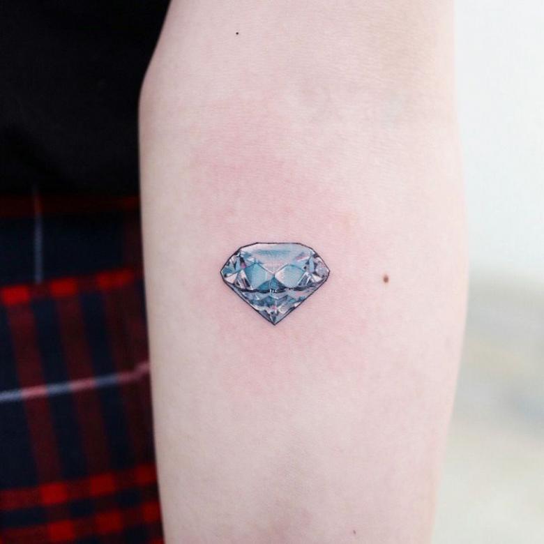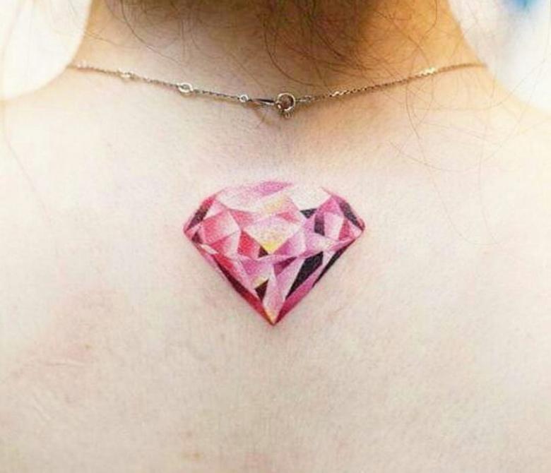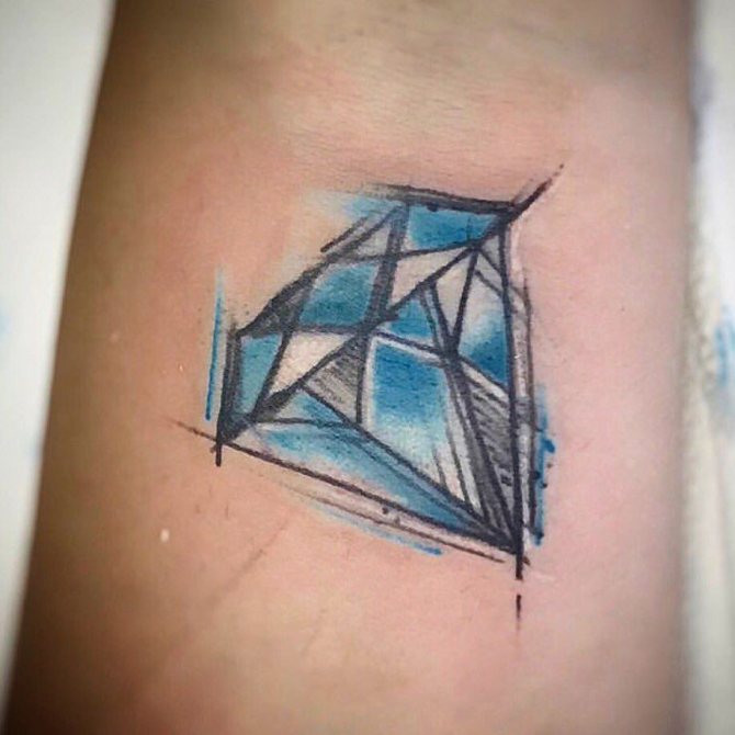 Vous ne pouvez pas détacher vos yeux de l'image colorée d'un tatouage en forme de diamant. Les joailliers aiment cette pierre précisément pour le jeu de couleur et de lumière sur ses facettes. Mais il n'est pas rare de voir une image simplifiée d'un tatouage (Petersburg) en une seule couleur.